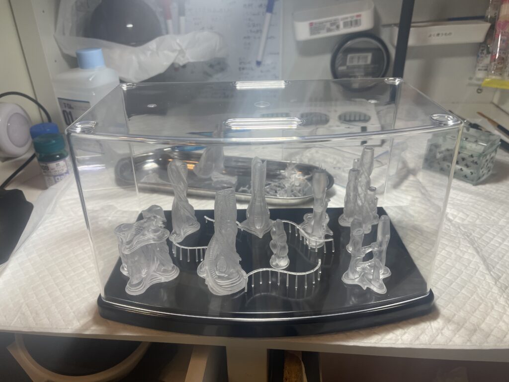 使用したのはNovaの高透明水洗いレジンです。設定は全部そのまま、サポートもオートです。