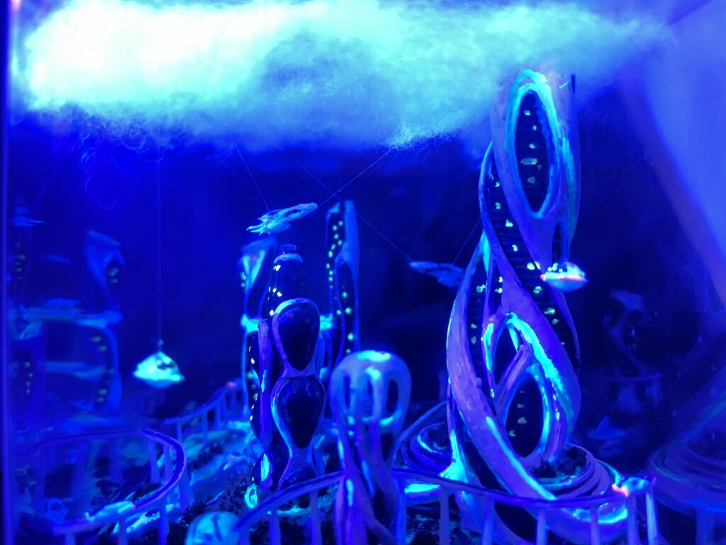 今回のテーマはずばり、**「未来」「未知」「未開拓」**です。 見たことのない世界って、なんだかワクワクしますよね。今回は現実の風景から離れ、想像力をフルに使ってひとつの「架空の惑星都市」を構築しました。